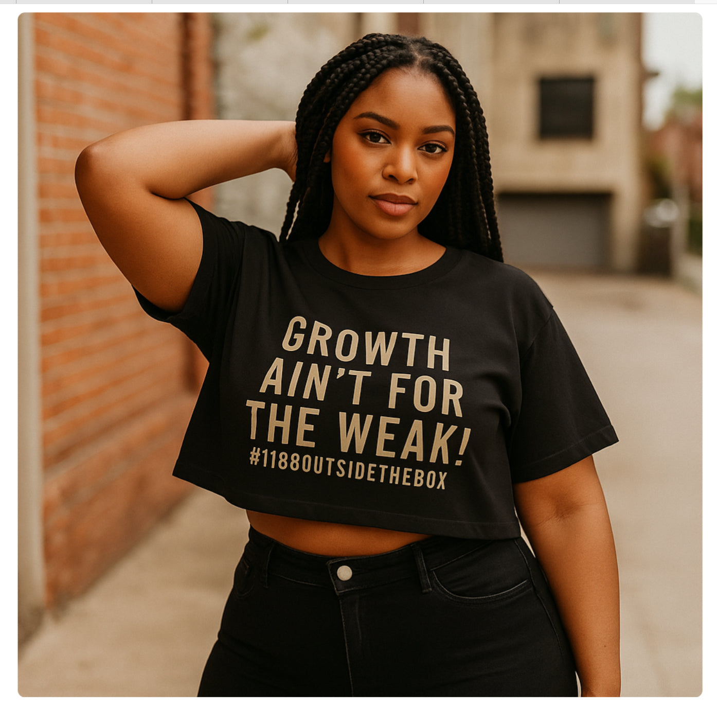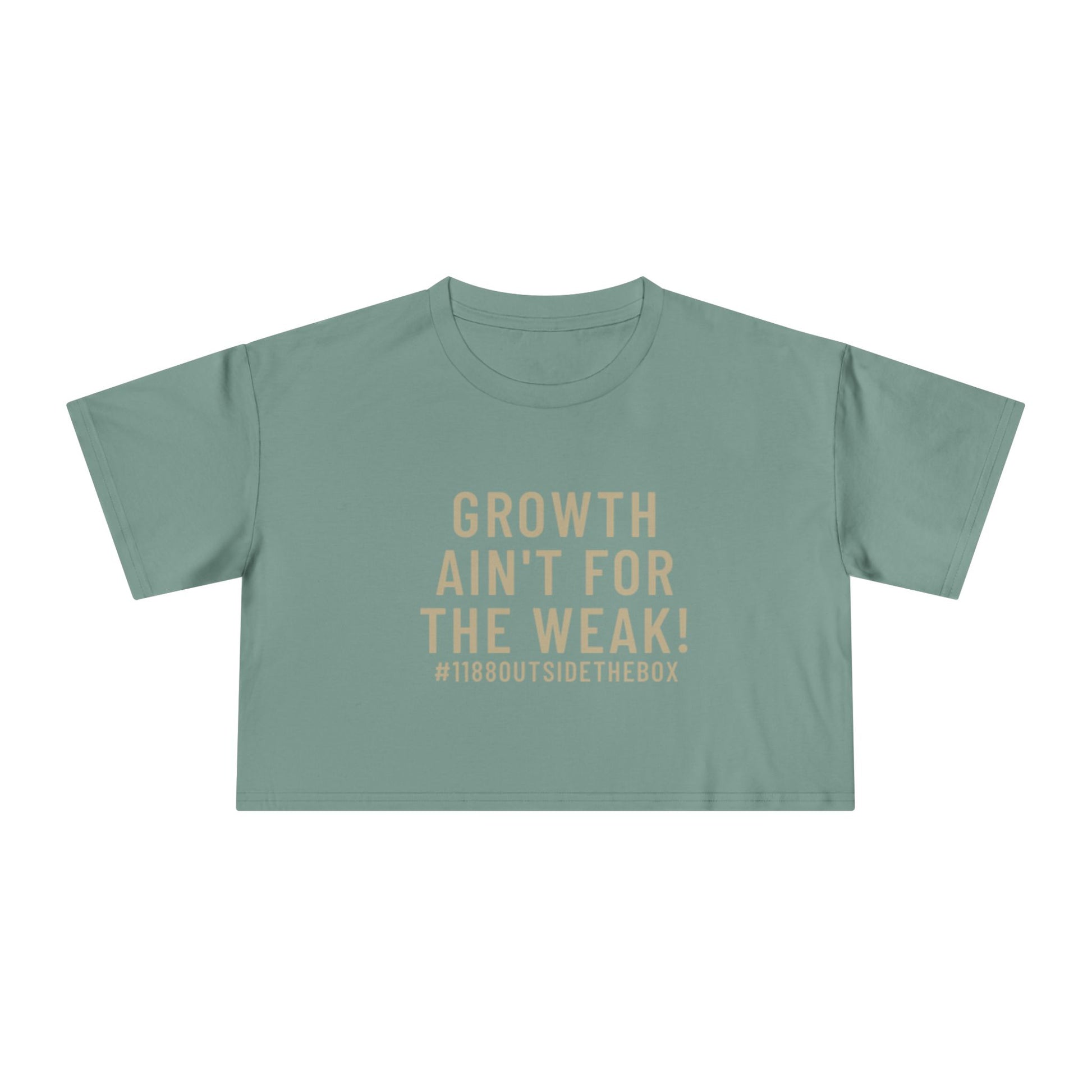 This Crop Tee with the empowering message 'Growth Ain’t For the Weak' gives off a strong, motivational vibe. Perfect for women looking for a relaxed fit top to inspire them throughout their personal growth journey. Ideal for wearing during workout sessions, yoga classes, or casual outings. Relevant for Women's History Month, International Women's Day, and empowering events.
